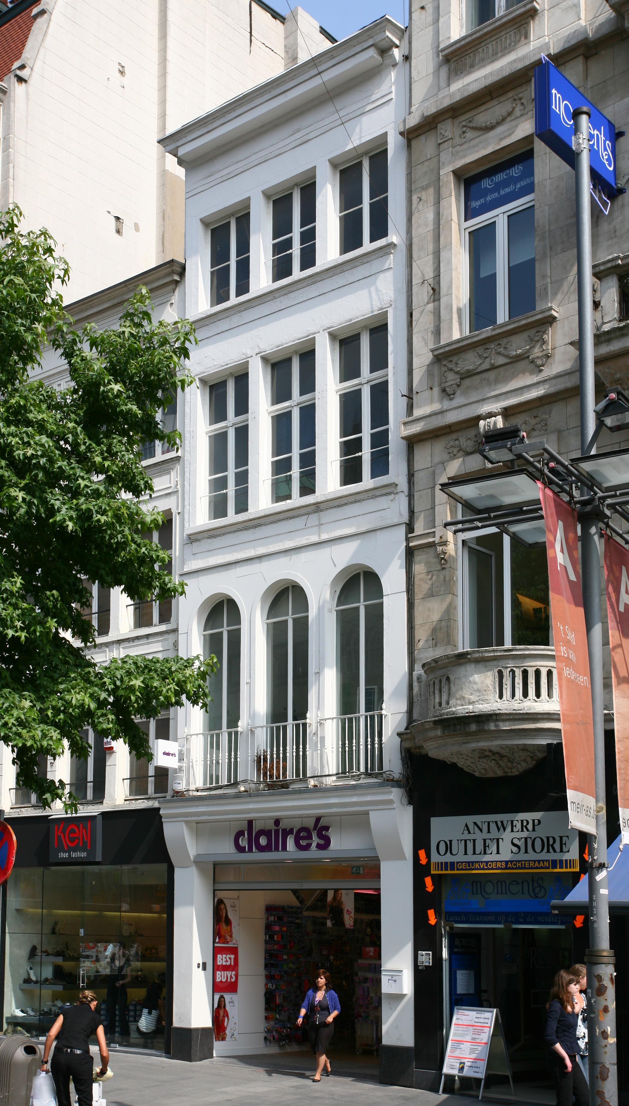 De afbeelding 'Antwerpen Meir 45' gemaakt door Vandevorst, Kris wordt ter beschikking gesteld door Agentschap Onroerend Erfgoed (AOE) onder de volgende voorwaarden: Modellicentie voor gratis hergebruik, Naamsvermelding 4.0 Internationaal.
