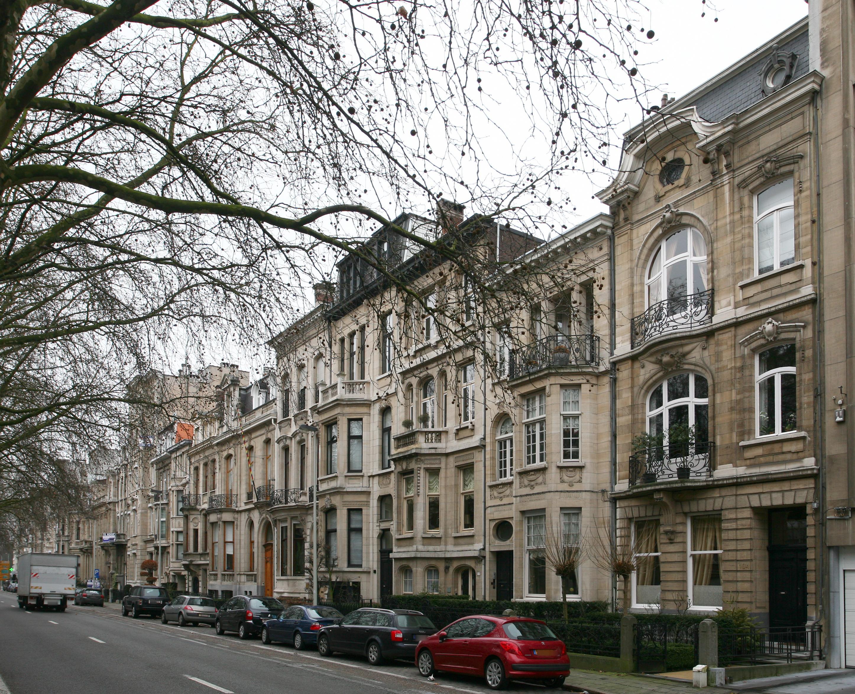 De afbeelding 'Antwerpen Jan Van Rijswijcklaan 104-116' gemaakt door Vandevorst, Kris wordt ter beschikking gesteld door Agentschap Onroerend Erfgoed (AOE) onder de volgende voorwaarden: Modellicentie voor gratis hergebruik, Naamsvermelding 4.0 Internationaal.