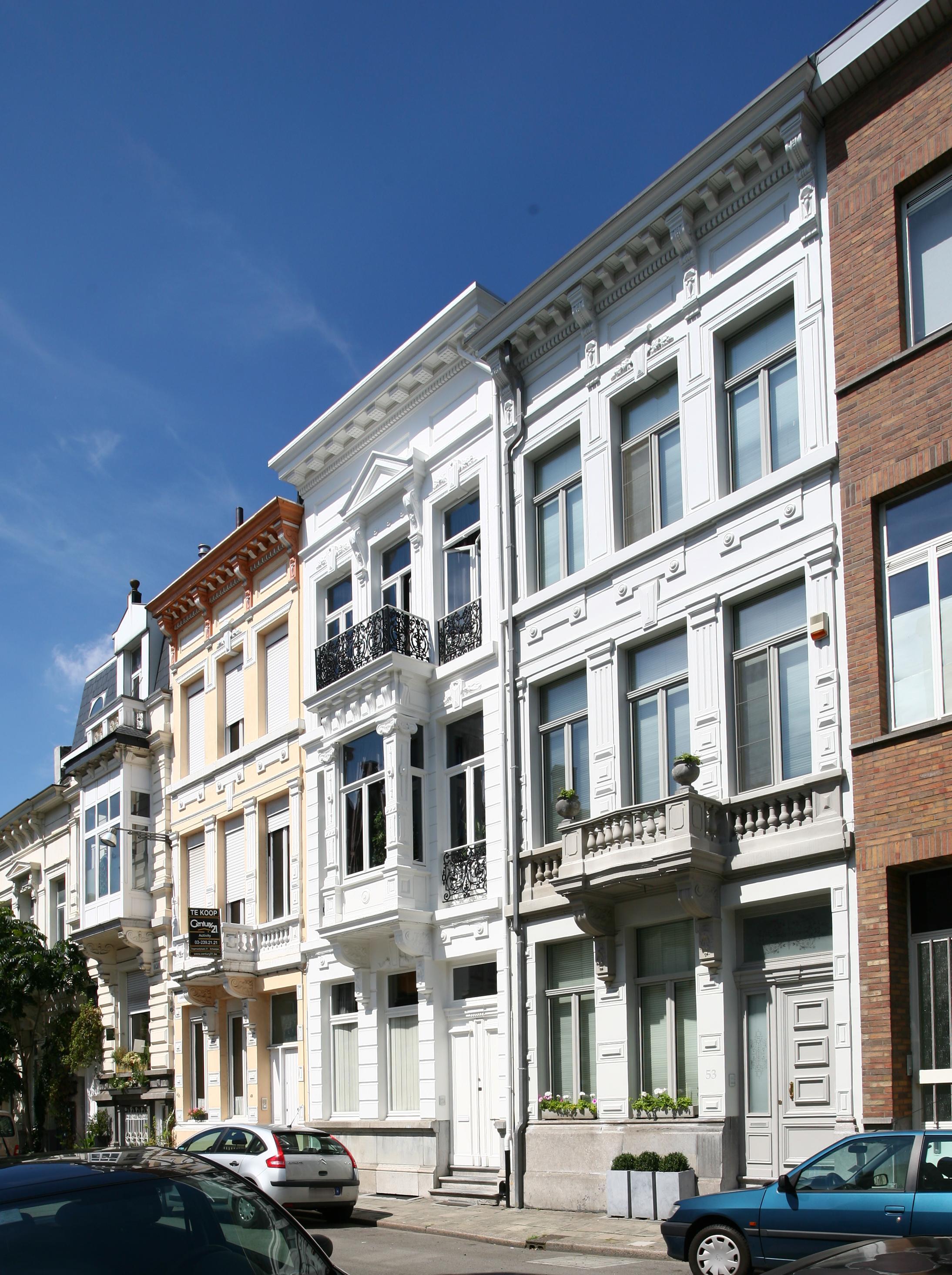 De afbeelding 'Antwerpen Lange Van Ruusbroecstraat 45-53' gemaakt door Vandevorst, Kris wordt ter beschikking gesteld door Agentschap Onroerend Erfgoed (AOE) onder de volgende voorwaarden: Modellicentie voor gratis hergebruik, Naamsvermelding 4.0 Internationaal.