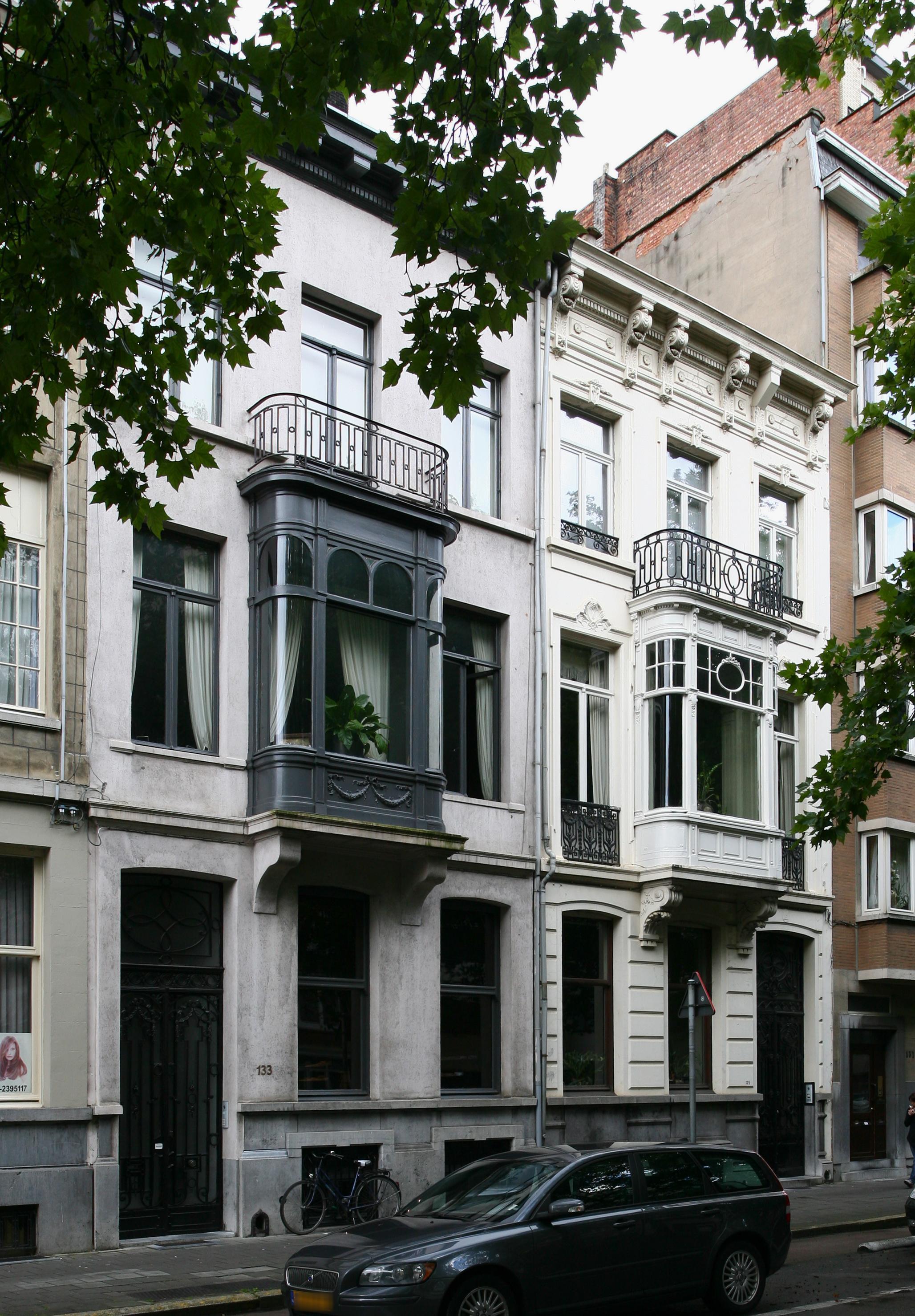 De afbeelding 'Antwerpen Belgiëlei 133-135' gemaakt door Vandevorst, Kris wordt ter beschikking gesteld door Agentschap Onroerend Erfgoed (AOE) onder de volgende voorwaarden: Modellicentie voor gratis hergebruik, Naamsvermelding 4.0 Internationaal.