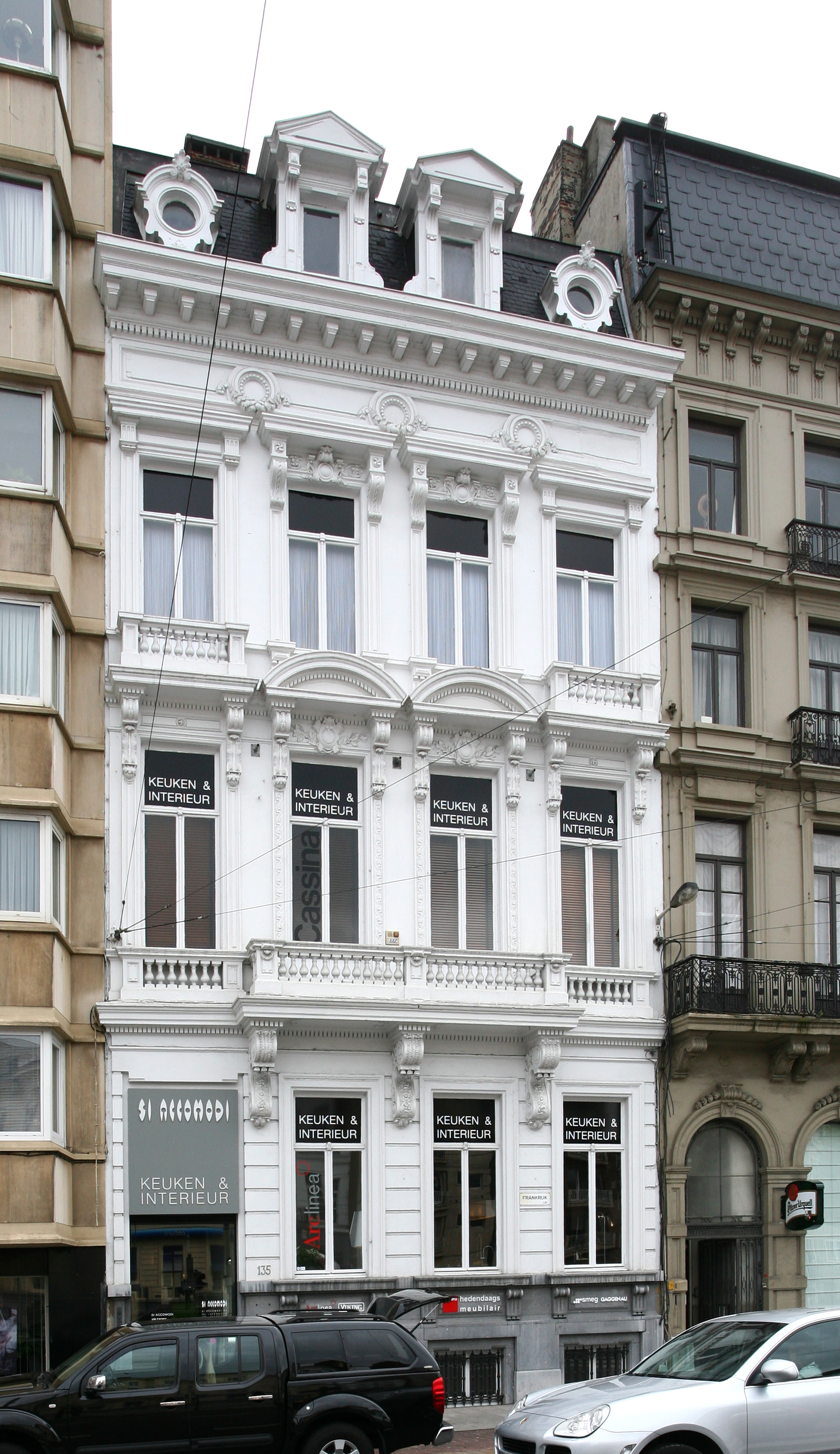 De afbeelding 'Antwerpen Frankrijklei 135' gemaakt door Vandevorst, Kris wordt ter beschikking gesteld door Agentschap Onroerend Erfgoed (AOE) onder de volgende voorwaarden: Modellicentie voor gratis hergebruik, Naamsvermelding 4.0 Internationaal.