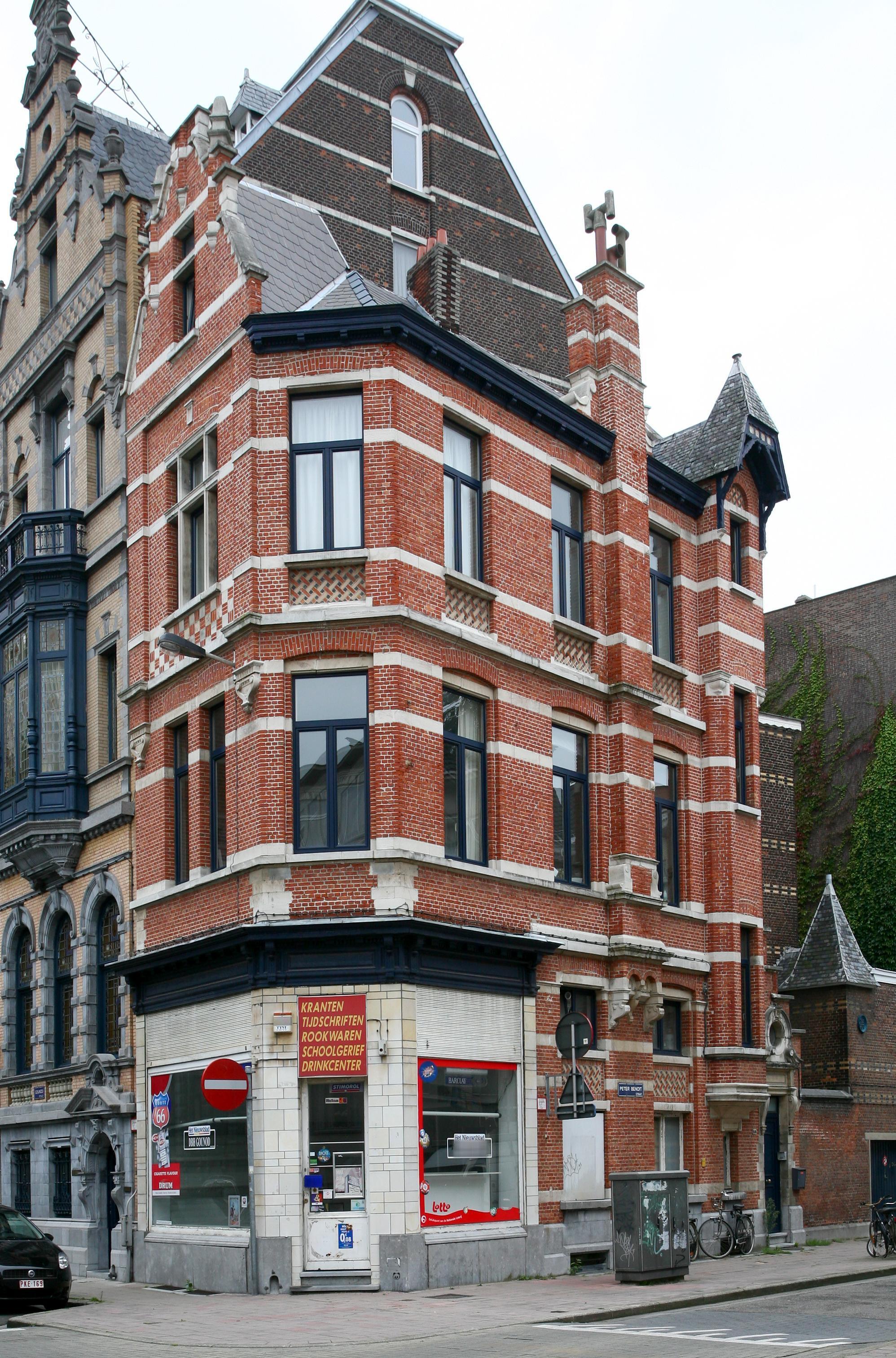 De afbeelding 'Antwerpen Peter Benoitstraat 1' gemaakt door Vandevorst, Kris wordt ter beschikking gesteld door Agentschap Onroerend Erfgoed (AOE) onder de volgende voorwaarden: Modellicentie voor gratis hergebruik, Naamsvermelding 4.0 Internationaal.