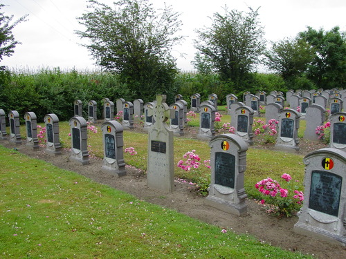 De afbeelding 'West-Vleteren: Belgische Begraafplaats: Heldenhuldezerk en Belgische grafzerken' gemaakt door Decoodt, Hannelore wordt ter beschikking gesteld door Agentschap Onroerend Erfgoed (AOE) onder de volgende voorwaarden: Modellicentie voor gratis hergebruik, Naamsvermelding 4.0 Internationaal.