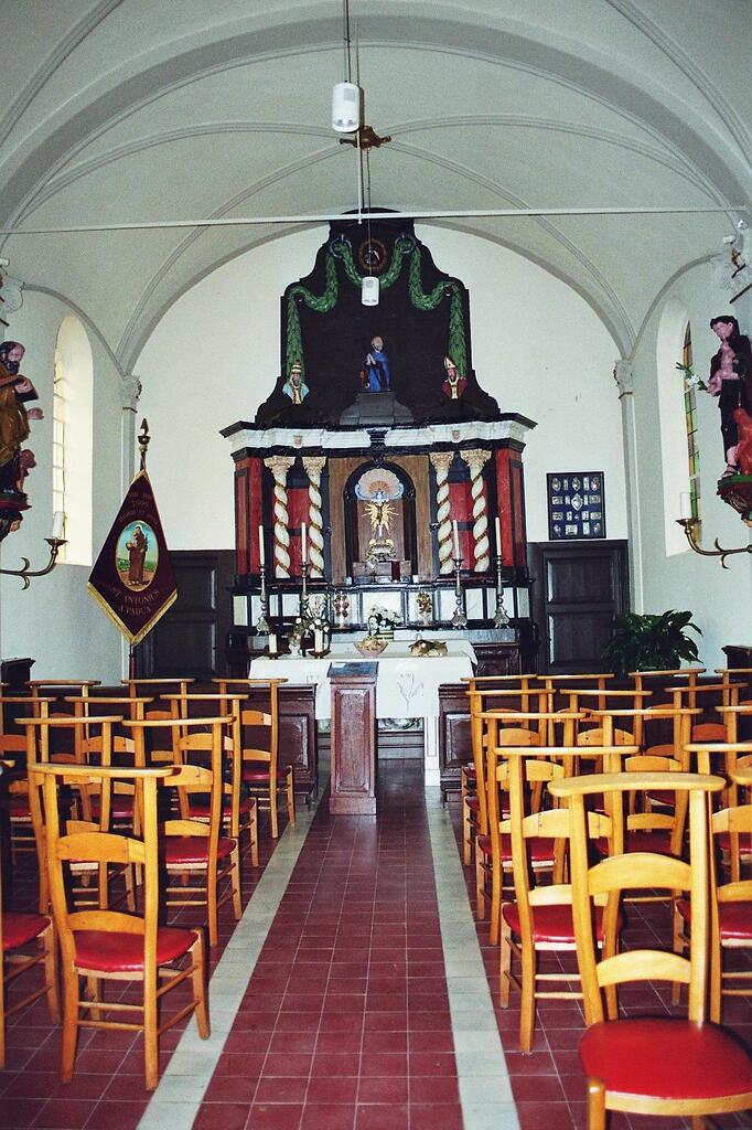 De afbeelding 'Waasmunster Rodendries zonder nummer Interieur van de Sint-Antoniuskapel' gemaakt door Duchêne, Helena wordt ter beschikking gesteld door Agentschap Onroerend Erfgoed (AOE) onder de volgende voorwaarden: Modellicentie voor gratis hergebruik, Naamsvermelding 4.0 Internationaal.
