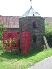 Honden-, kippen- en duivenhok: de benedenverdieping is deels in gebruik als hondenhok en deels als kippenhok. Duivenhok op de eerste verdieping.
