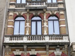 De afbeelding 'Burgerwoning met topgevel in eclectische stijl' gemaakt door Hooft, Elise wordt ter beschikking gesteld door Agentschap Onroerend Erfgoed (AOE) onder de volgende voorwaarden: Modellicentie voor gratis hergebruik, Naamsvermelding 4.0 Internationaal.