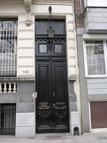 De afbeelding 'Rij neoclassicistische burgerhuizen' gemaakt door Hooft, Elise wordt ter beschikking gesteld door Agentschap Onroerend Erfgoed (AOE) onder de volgende voorwaarden: Modellicentie voor gratis hergebruik, Naamsvermelding 4.0 Internationaal.
