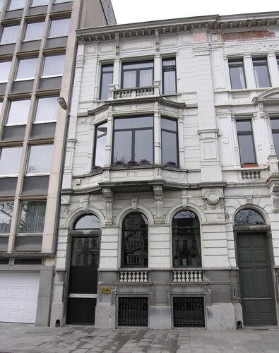 De afbeelding 'Neoclassicistische huizenrij' gemaakt door Hooft, Elise wordt ter beschikking gesteld door Agentschap Onroerend Erfgoed (AOE) onder de volgende voorwaarden: Modellicentie voor gratis hergebruik, Naamsvermelding 4.0 Internationaal.