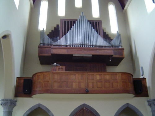 De afbeelding 'Orgel in de parochiekerk Heilig Hart' gemaakt door Roose, Patrick wordt ter beschikking gesteld door Agentschap Onroerend Erfgoed (AOE) onder de volgende voorwaarden: Modellicentie voor gratis hergebruik, Naamsvermelding 4.0 Internationaal.