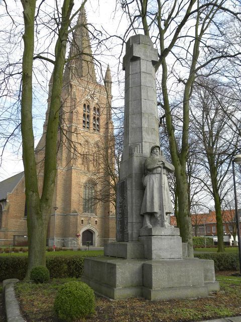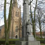 De afbeelding 'Gedenkzuil militaire en burgerlijke doden met erachter de parochiekerk Sint-Paulus Bekering' gemaakt door Verboven, Hilde wordt ter beschikking gesteld door Agentschap Onroerend Erfgoed (AOE) onder de volgende voorwaarden: Modellicentie voor gratis hergebruik, Naamsvermelding 4.0 Internationaal.
