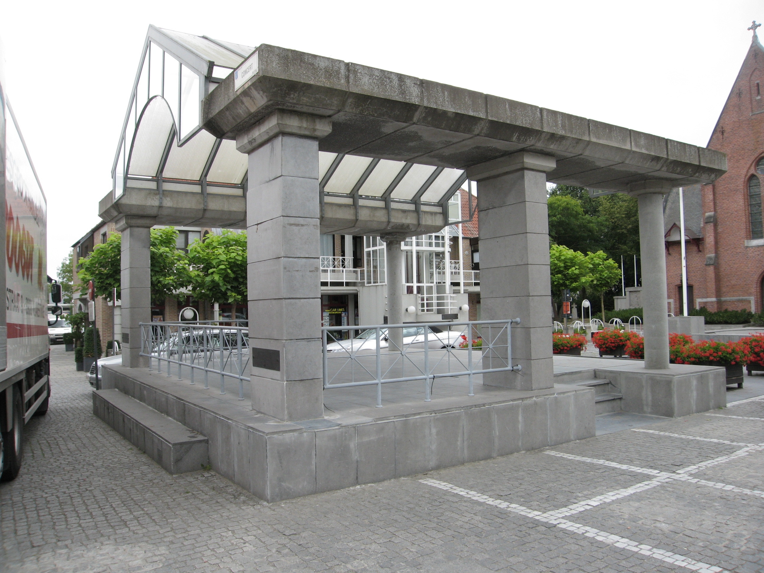 De afbeelding 'Koekelare Concertplein zonder nummer muziekkiosk' gemaakt door Baert, Sofie wordt ter beschikking gesteld door Agentschap Onroerend Erfgoed (AOE) onder de volgende voorwaarden: Modellicentie voor gratis hergebruik, Naamsvermelding 4.0 Internationaal.