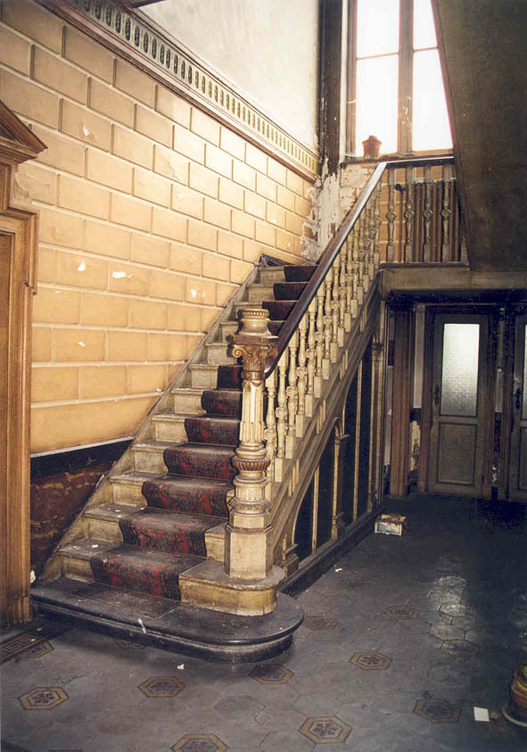 De afbeelding 'Dokterswoning met praktijk en tuin: traphal' gemaakt door Vanneste, Pol wordt ter beschikking gesteld door Agentschap Onroerend Erfgoed (AOE) onder de volgende voorwaarden: Modellicentie voor gratis hergebruik, Naamsvermelding 4.0 Internationaal.