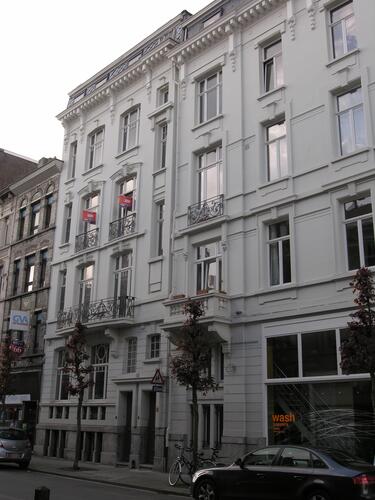 De afbeelding 'Hoekcomplex in neoclassicistische stijl' gemaakt door Hooft, Elise wordt ter beschikking gesteld door Agentschap Onroerend Erfgoed (AOE) onder de volgende voorwaarden: Modellicentie voor gratis hergebruik, Naamsvermelding 4.0 Internationaal.