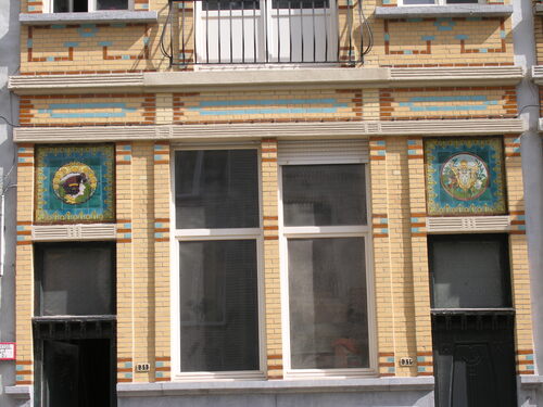 De afbeelding 'Samenstel van twee meergezinswoningen' gemaakt door Hooft, Elise wordt ter beschikking gesteld door Agentschap Onroerend Erfgoed (AOE) onder de volgende voorwaarden: Modellicentie voor gratis hergebruik, Naamsvermelding 4.0 Internationaal.