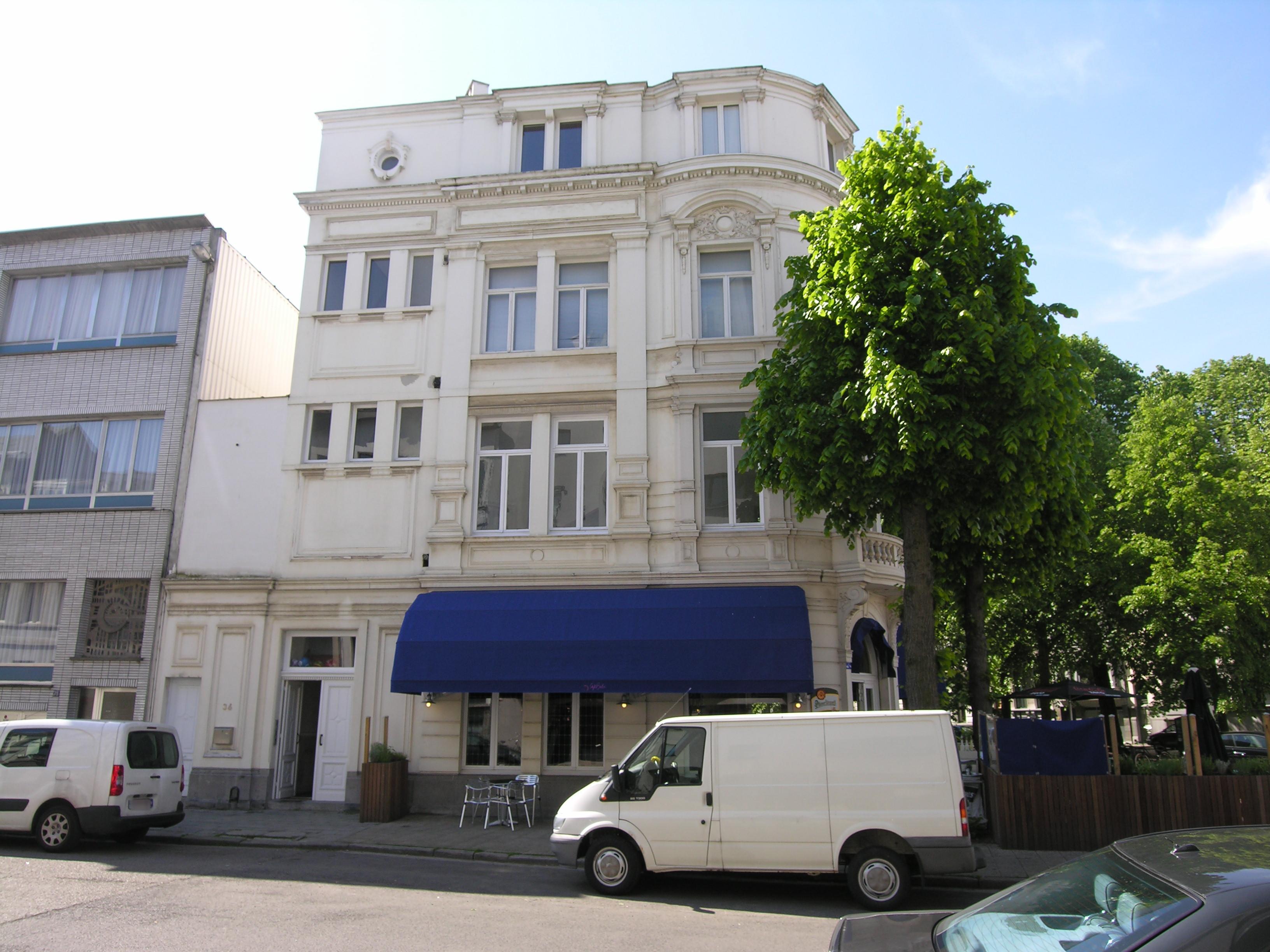 De afbeelding 'Neoclassicistisch hoekcomplex' gemaakt door Hooft, Elise wordt ter beschikking gesteld door Agentschap Onroerend Erfgoed (AOE) onder de volgende voorwaarden: Modellicentie voor gratis hergebruik, Naamsvermelding 4.0 Internationaal.