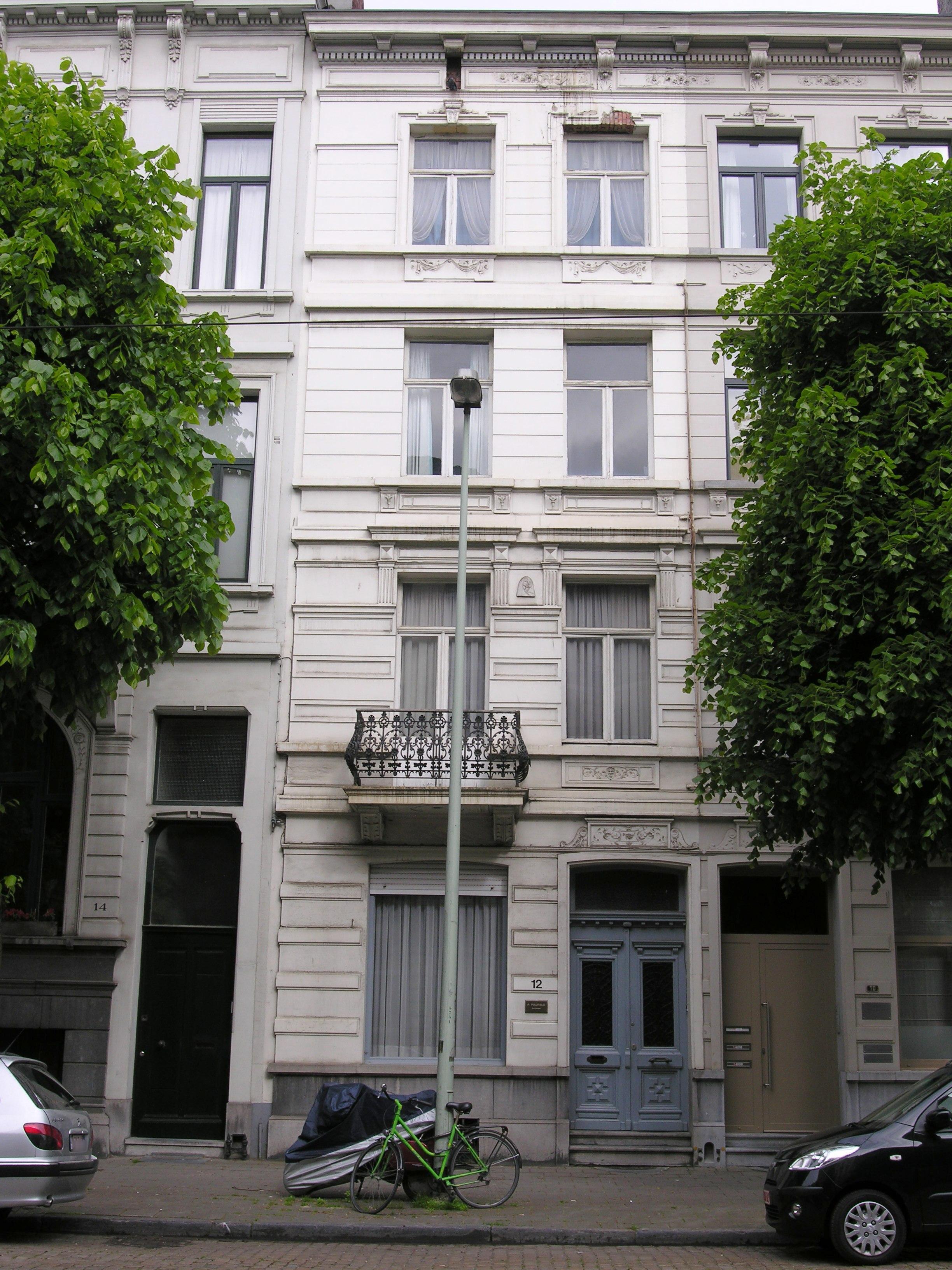 De afbeelding 'Antwerpen Leopold de Waelstraat 12' gemaakt door Hooft, Elise wordt ter beschikking gesteld door Agentschap Onroerend Erfgoed (AOE) onder de volgende voorwaarden: Modellicentie voor gratis hergebruik, Naamsvermelding 4.0 Internationaal.