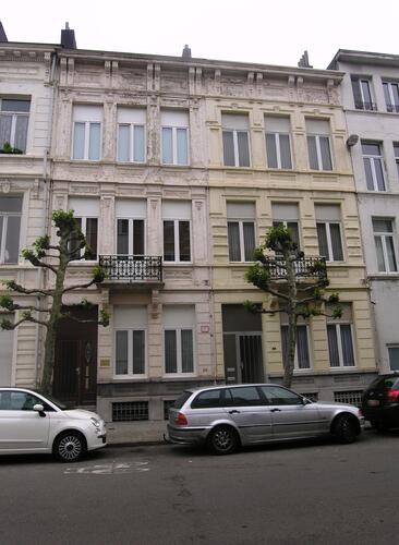 De afbeelding 'Twee neoclassicistische burgerhuizen' gemaakt door Hooft, Elise wordt ter beschikking gesteld door Agentschap Onroerend Erfgoed (AOE) onder de volgende voorwaarden: Modellicentie voor gratis hergebruik, Naamsvermelding 4.0 Internationaal.