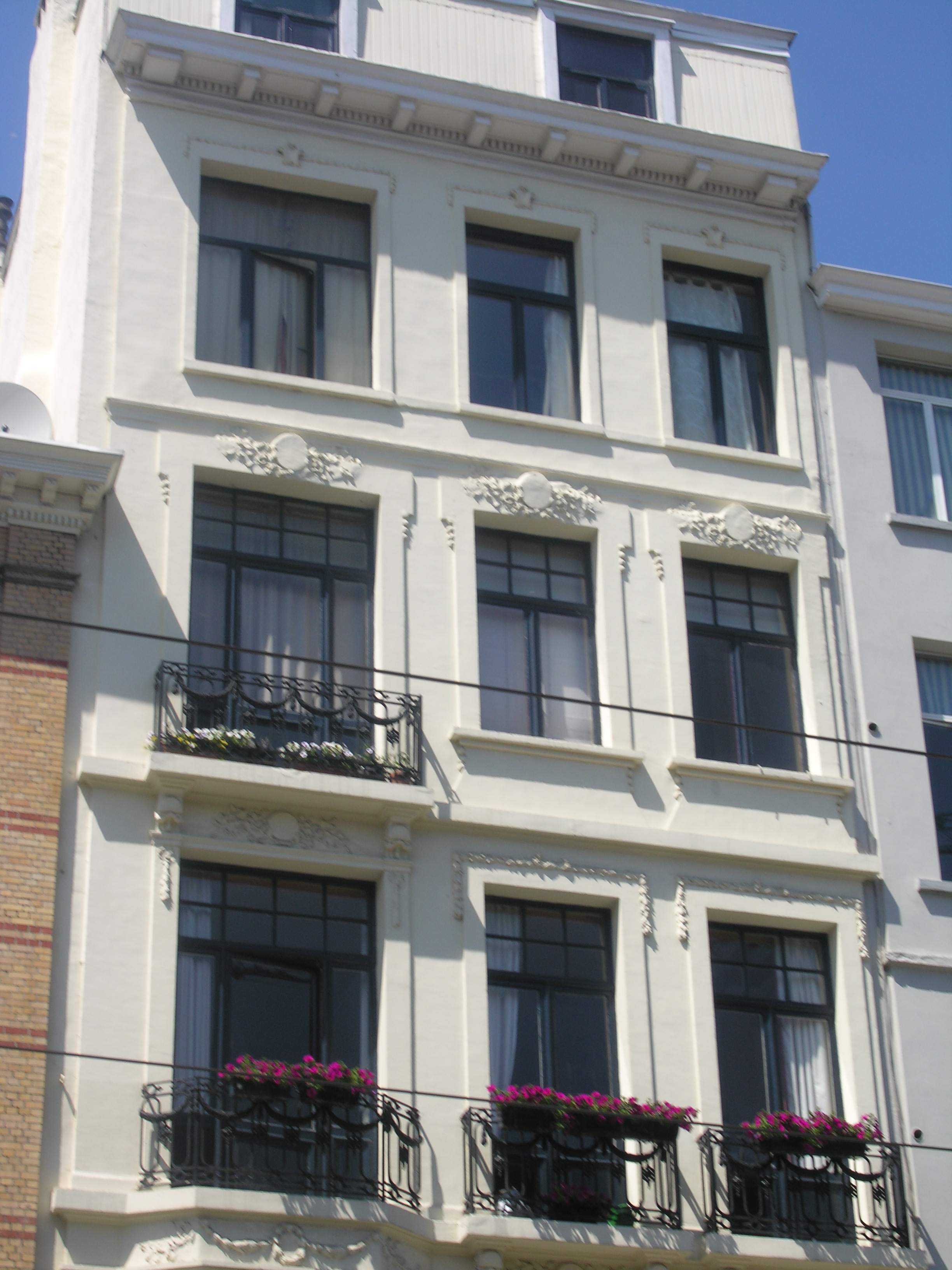De afbeelding 'Neoclassicistische meergezinswoning' gemaakt door Hooft, Elise wordt ter beschikking gesteld door Agentschap Onroerend Erfgoed (AOE) onder de volgende voorwaarden: Modellicentie voor gratis hergebruik, Naamsvermelding 4.0 Internationaal.