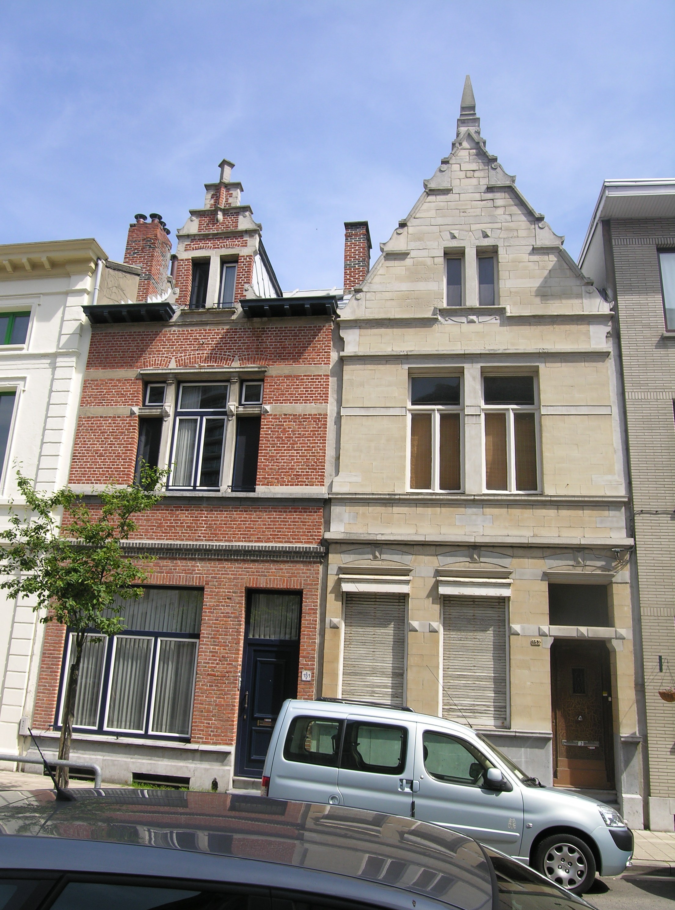 De afbeelding 'Ensemble van burgerhuizen en opslagplaats in eclectische stijl' gemaakt door Hooft, Elise wordt ter beschikking gesteld door Agentschap Onroerend Erfgoed (AOE) onder de volgende voorwaarden: Modellicentie voor gratis hergebruik, Naamsvermelding 4.0 Internationaal.