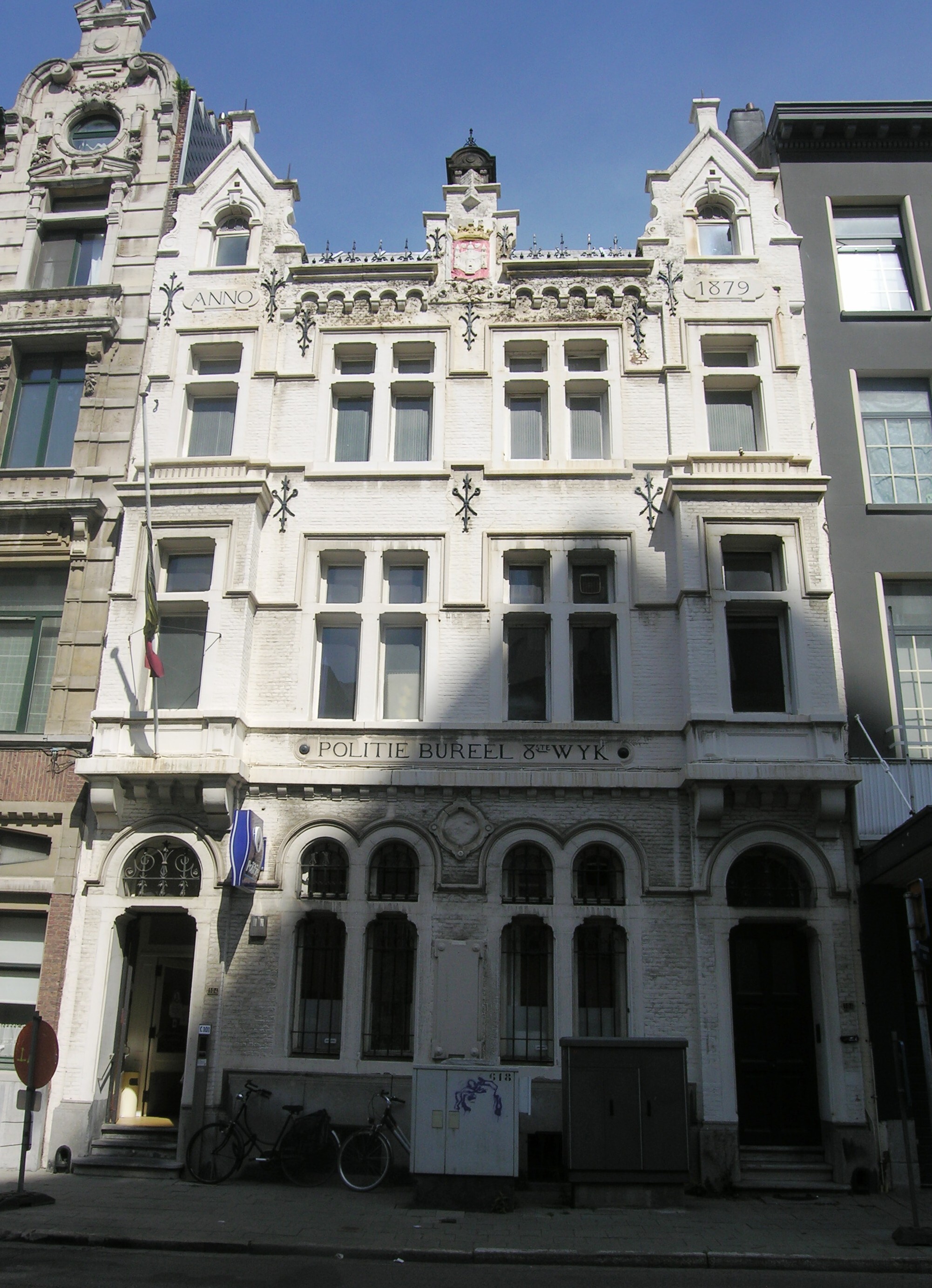 De afbeelding 'Politiecommissariaat van de 8ste Wijk' gemaakt door Hooft, Elise wordt ter beschikking gesteld door Agentschap Onroerend Erfgoed (AOE) onder de volgende voorwaarden: Modellicentie voor gratis hergebruik, Naamsvermelding 4.0 Internationaal.