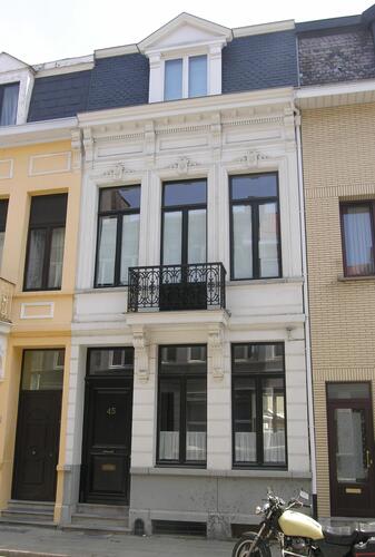 De afbeelding 'Neoclassicistische eenheidsbebouwing' gemaakt door Hooft, Elise wordt ter beschikking gesteld door Agentschap Onroerend Erfgoed (AOE) onder de volgende voorwaarden: Modellicentie voor gratis hergebruik, Naamsvermelding 4.0 Internationaal.