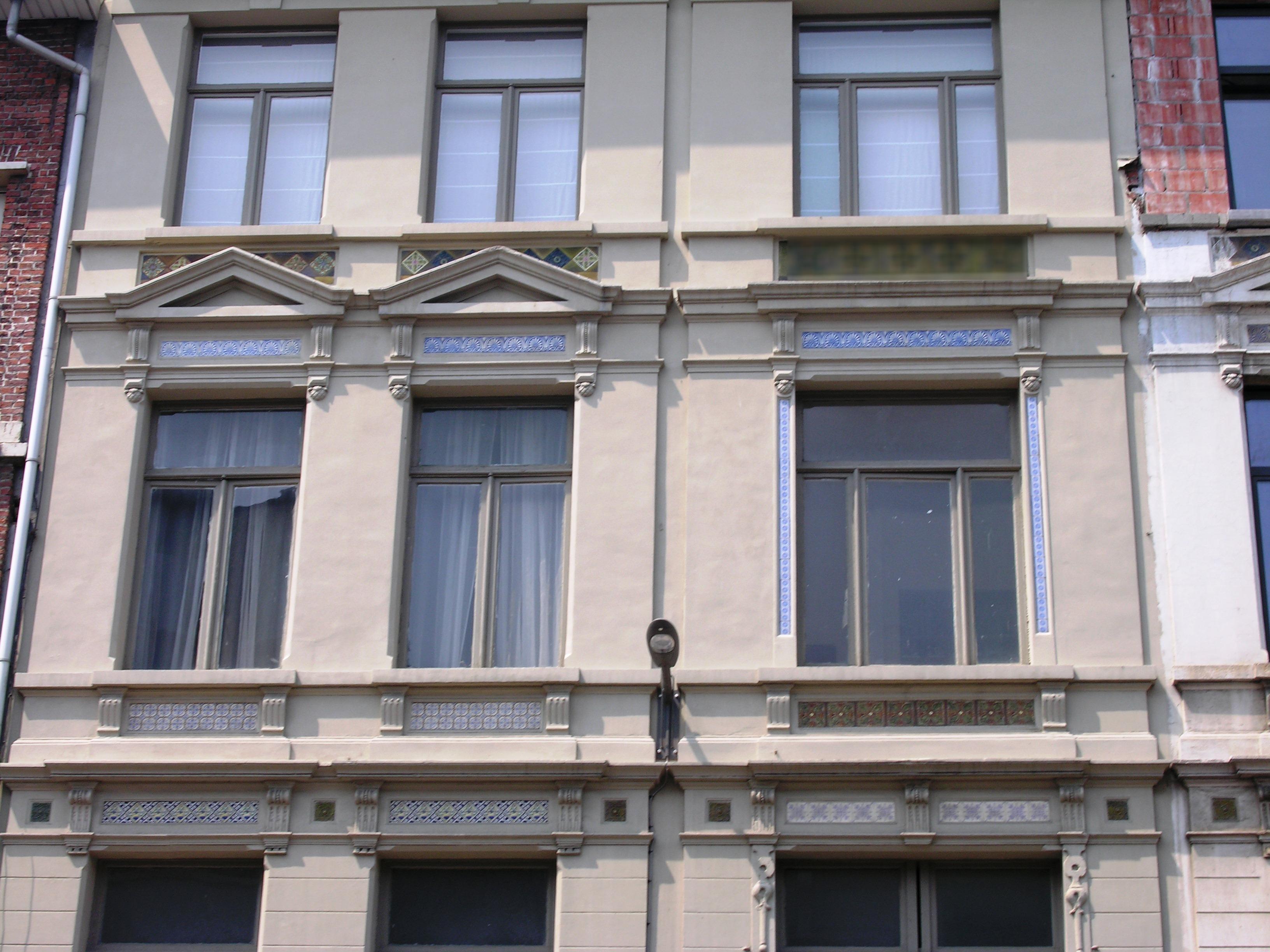 De afbeelding 'Twee eclectische meergezinswoningen met pakhuis' gemaakt door Hooft, Elise wordt ter beschikking gesteld door Agentschap Onroerend Erfgoed (AOE) onder de volgende voorwaarden: Modellicentie voor gratis hergebruik, Naamsvermelding 4.0 Internationaal.