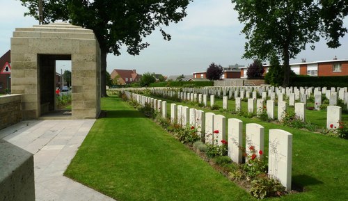 De afbeelding 'Poperinge Poperinghe New Military Cemetry' gemaakt door Vanderhispallie, Eelkje wordt ter beschikking gesteld door Agentschap Onroerend Erfgoed (AOE) onder de volgende voorwaarden: Modellicentie voor gratis hergebruik, Naamsvermelding 4.0 Internationaal.