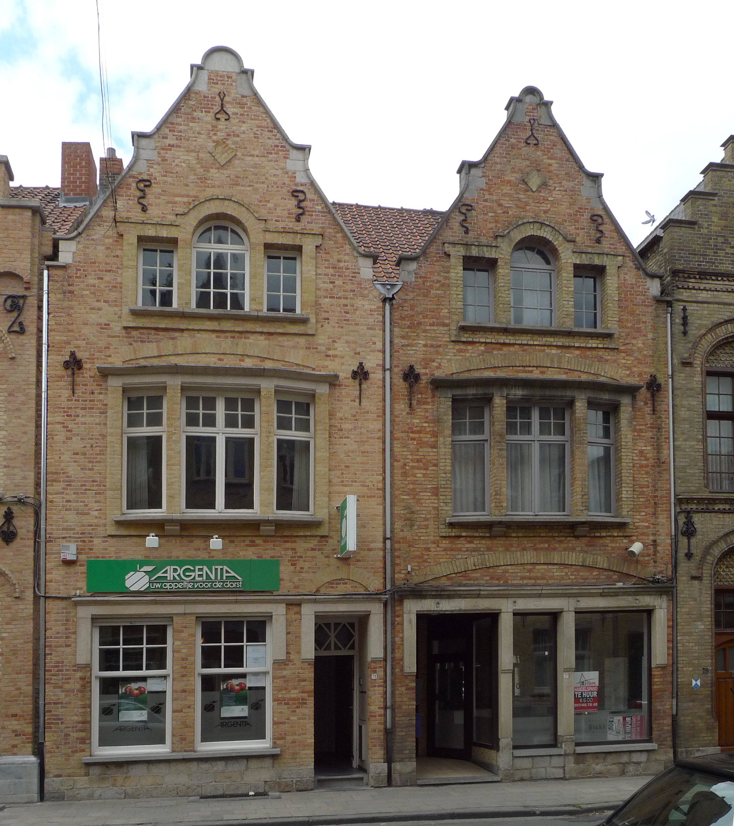 De afbeelding 'Ieper Diksmuidestraat 75-77' gemaakt door Vanderhispallie, Eelkje wordt ter beschikking gesteld door Agentschap Onroerend Erfgoed (AOE) onder de volgende voorwaarden: Modellicentie voor gratis hergebruik, Naamsvermelding 4.0 Internationaal.