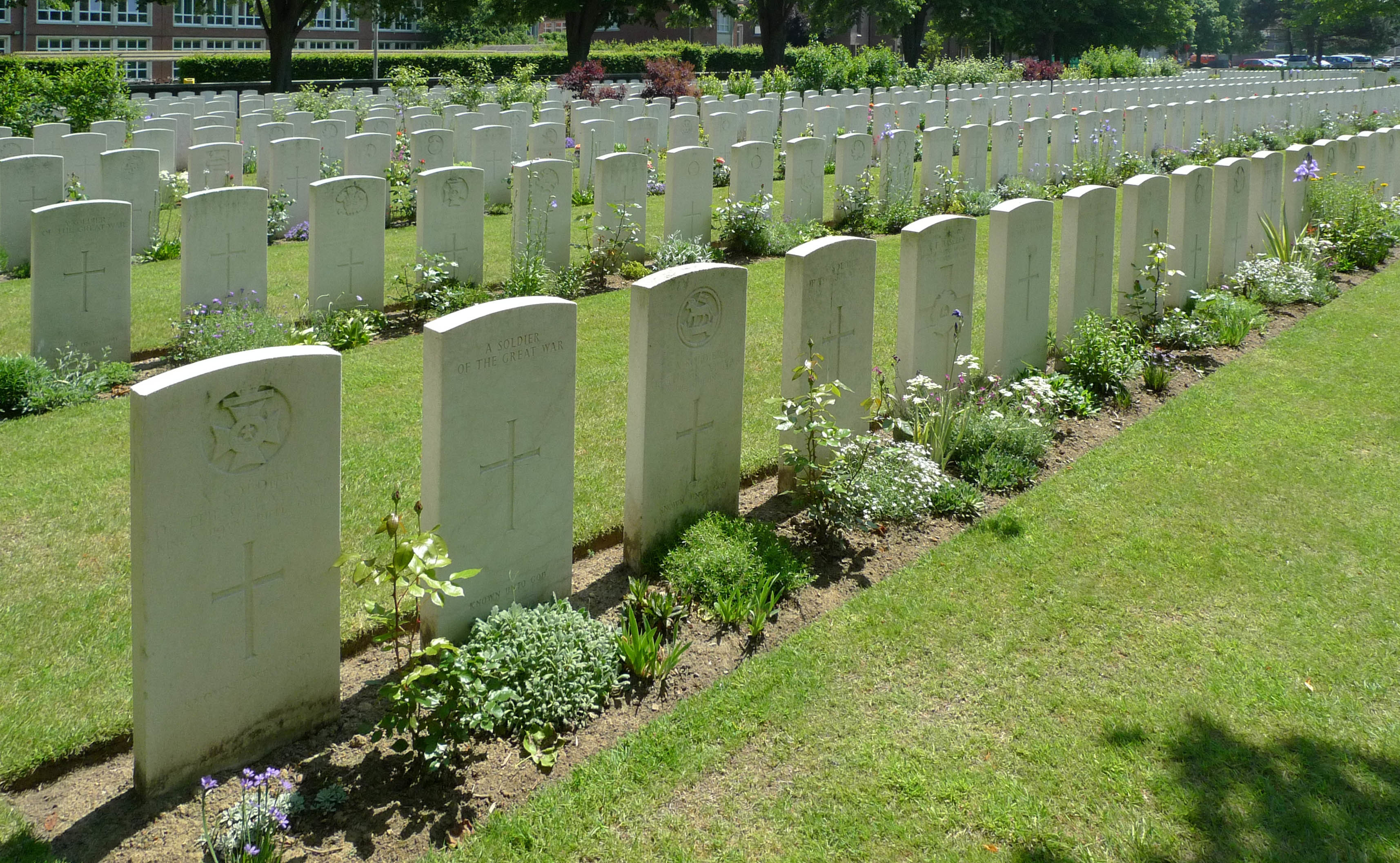 De afbeelding 'Ieper Plumerlaan zonder nummer Ypres Reservoir Cemetry' gemaakt door Vanderhispallie, Eelkje wordt ter beschikking gesteld door Agentschap Onroerend Erfgoed (AOE) onder de volgende voorwaarden: Modellicentie voor gratis hergebruik, Naamsvermelding 4.0 Internationaal.