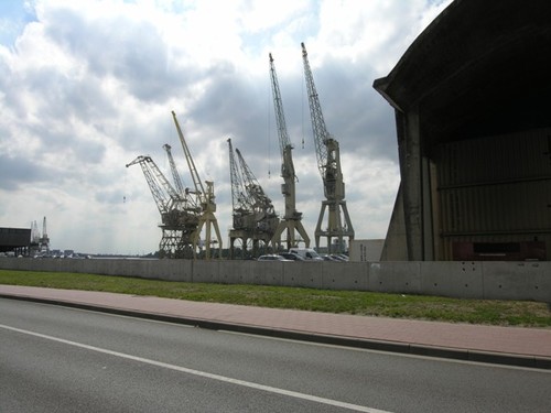 De afbeelding 'Havenkranen Rijnkaai' gemaakt door Hooft, Elise wordt ter beschikking gesteld door Agentschap Onroerend Erfgoed (AOE) onder de volgende voorwaarden: Modellicentie voor gratis hergebruik, Naamsvermelding 4.0 Internationaal.