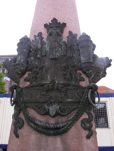 De afbeelding 'Antwerpen Godefriduskaai Wapenschildendata op gedenkzuil' gemaakt door Hooft, Elise wordt ter beschikking gesteld door Agentschap Onroerend Erfgoed (AOE) onder de volgende voorwaarden: Modellicentie voor gratis hergebruik, Naamsvermelding 4.0 Internationaal.