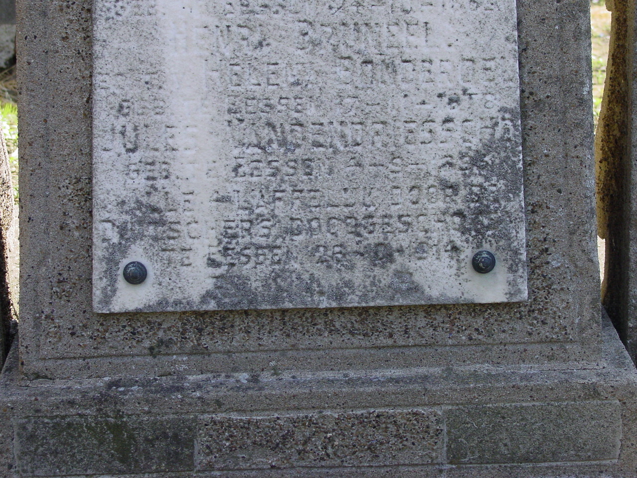 De afbeelding 'Esen: Kerkhof: Gedenkteken voor 'Laffelyk Doodgeschoten' burgers: detail' gemaakt door Decoodt, Hannelore wordt ter beschikking gesteld door Agentschap Onroerend Erfgoed (AOE) onder de volgende voorwaarden: Modellicentie voor gratis hergebruik, Naamsvermelding 4.0 Internationaal.