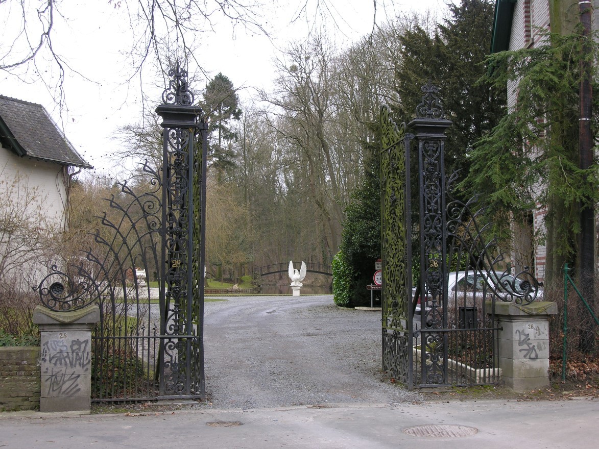 De afbeelding 'VlB_Link_Kasteelstr_hek' gemaakt door Kennes, Hilde wordt ter beschikking gesteld door Agentschap Onroerend Erfgoed (AOE) onder de volgende voorwaarden: Modellicentie voor gratis hergebruik, Naamsvermelding 4.0 Internationaal.