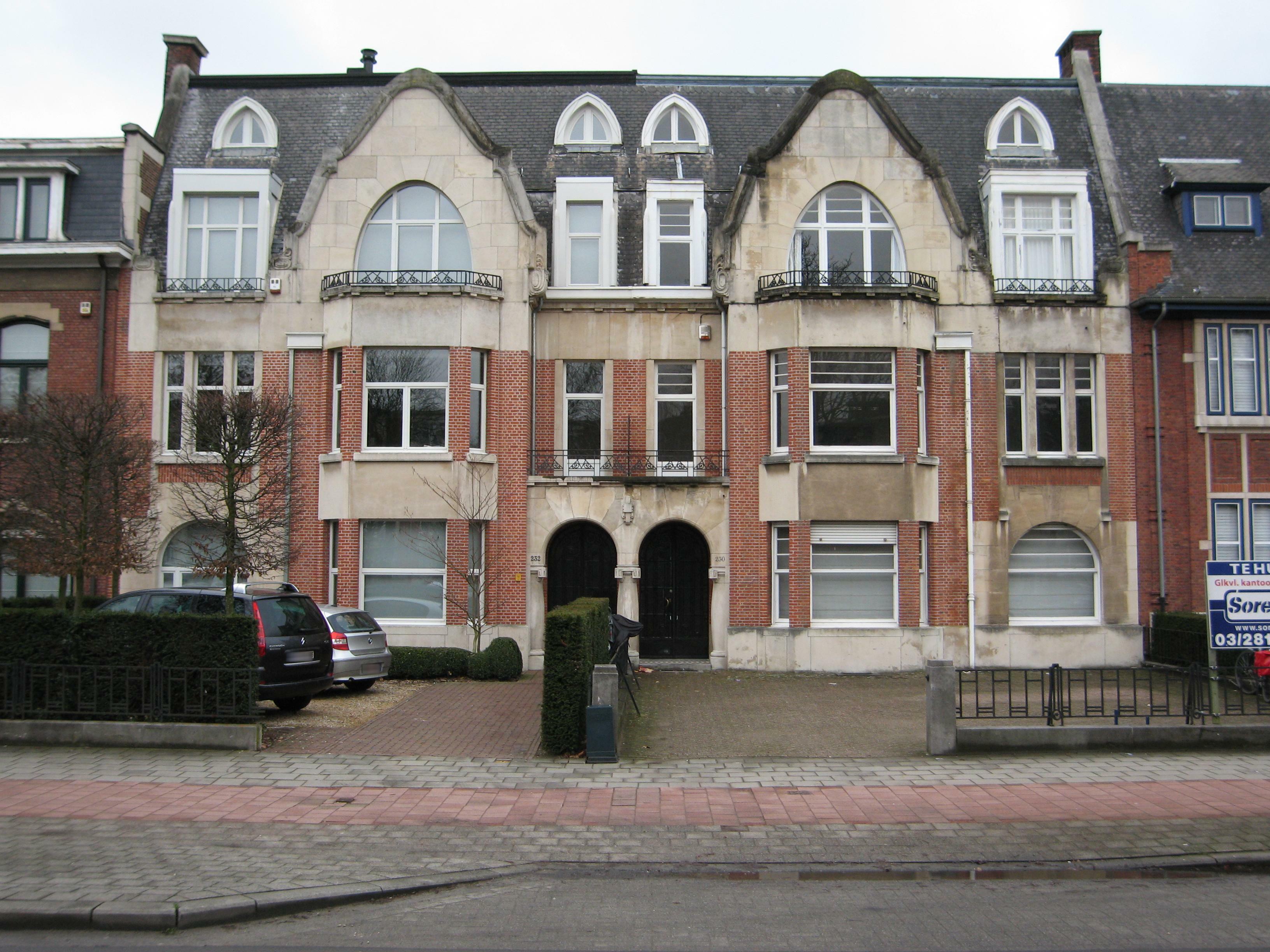 De afbeelding 'Antwerpen Jan Van Rijswijcklaan 230-232' gemaakt door Braeken, Jo wordt ter beschikking gesteld door Agentschap Onroerend Erfgoed (AOE) onder de volgende voorwaarden: Modellicentie voor gratis hergebruik, Naamsvermelding 4.0 Internationaal.