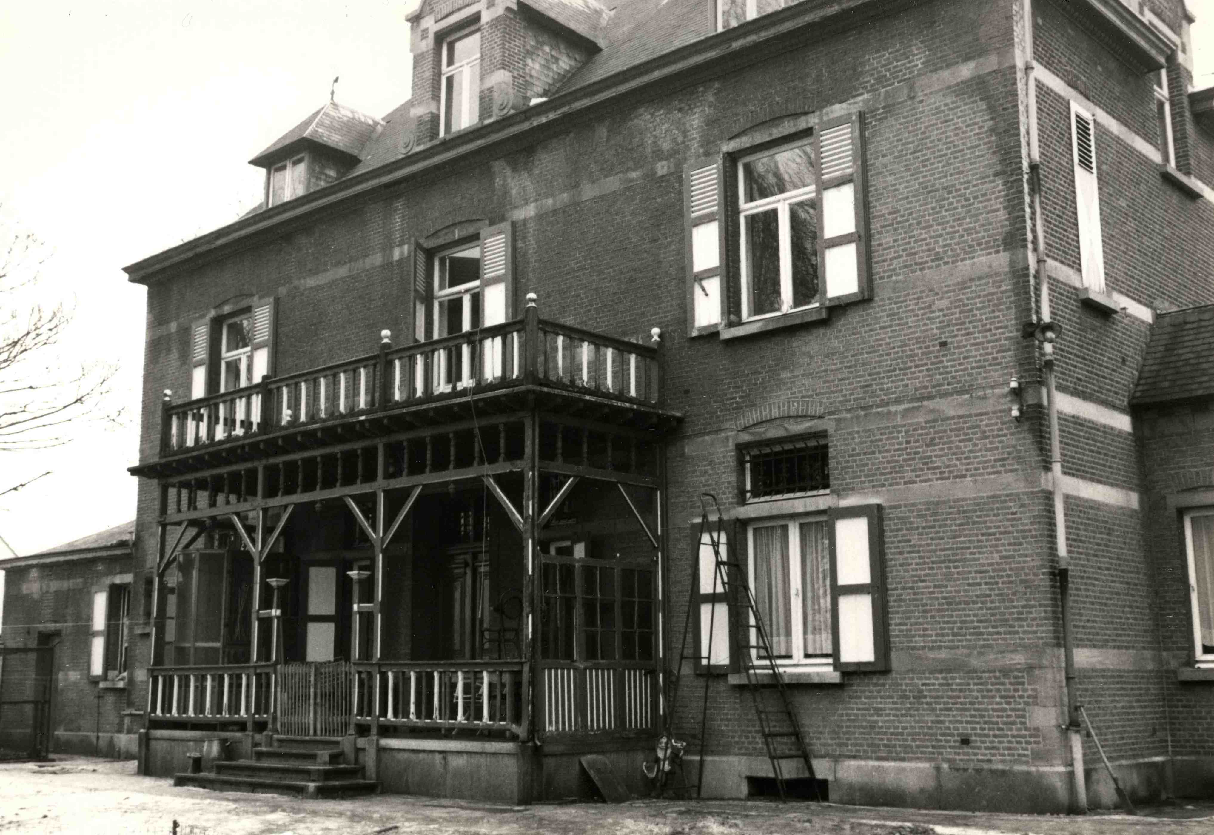 De afbeelding 'Heropgebouwde pastorie met koetshuis en tuin' wordt ter beschikking gesteld door Agentschap Onroerend Erfgoed (AOE) onder de volgende voorwaarden: Modellicentie voor gratis hergebruik, Naamsvermelding 4.0 Internationaal.