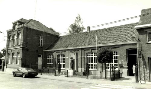 De afbeelding 'Gemeenteschool met onderwijzerswoning en oorlogsmonument' wordt ter beschikking gesteld door Agentschap Onroerend Erfgoed (AOE) onder de volgende voorwaarden: Modellicentie voor gratis hergebruik, Naamsvermelding 4.0 Internationaal.