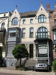 De afbeelding 'Twee burgerhuizen in sobere art nouveau' gemaakt door Braeken, Jo wordt ter beschikking gesteld door Agentschap Onroerend Erfgoed (AOE) onder de volgende voorwaarden: Modellicentie voor gratis hergebruik, Naamsvermelding 4.0 Internationaal.