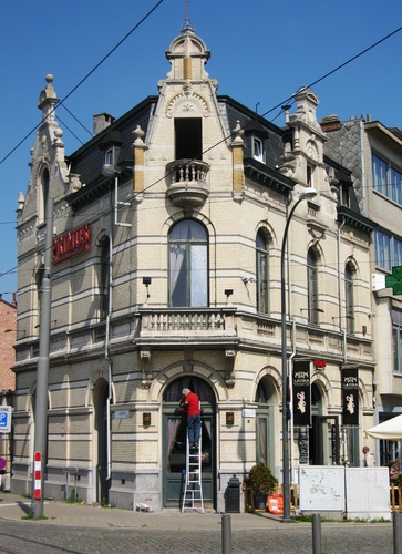 De afbeelding 'Eclectisch hoekpand met café' gemaakt door Braeken, Jo wordt ter beschikking gesteld door Agentschap Onroerend Erfgoed (AOE) onder de volgende voorwaarden: Modellicentie voor gratis hergebruik, Naamsvermelding 4.0 Internationaal.