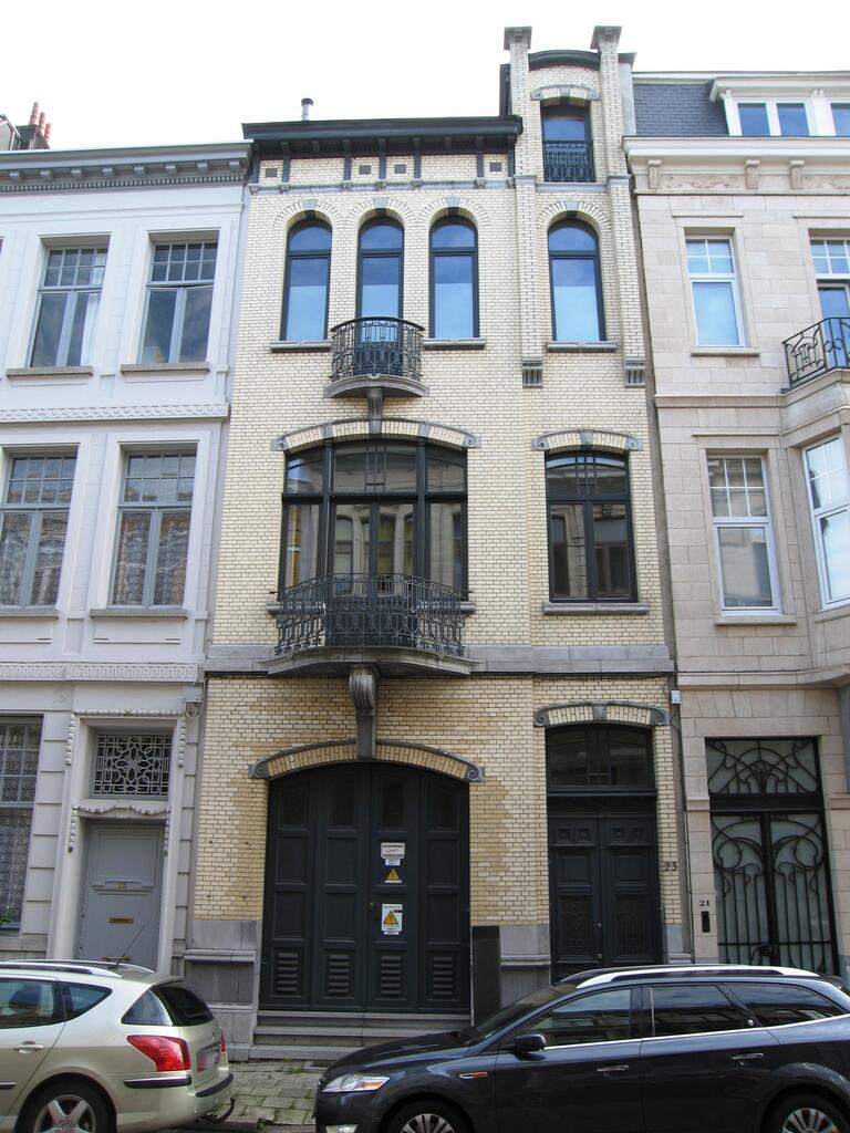 De afbeelding 'Meergezinswoning in art-nouveaustijl' gemaakt door Braeken, Jo wordt ter beschikking gesteld door Agentschap Onroerend Erfgoed (AOE) onder de volgende voorwaarden: Modellicentie voor gratis hergebruik, Naamsvermelding 4.0 Internationaal.