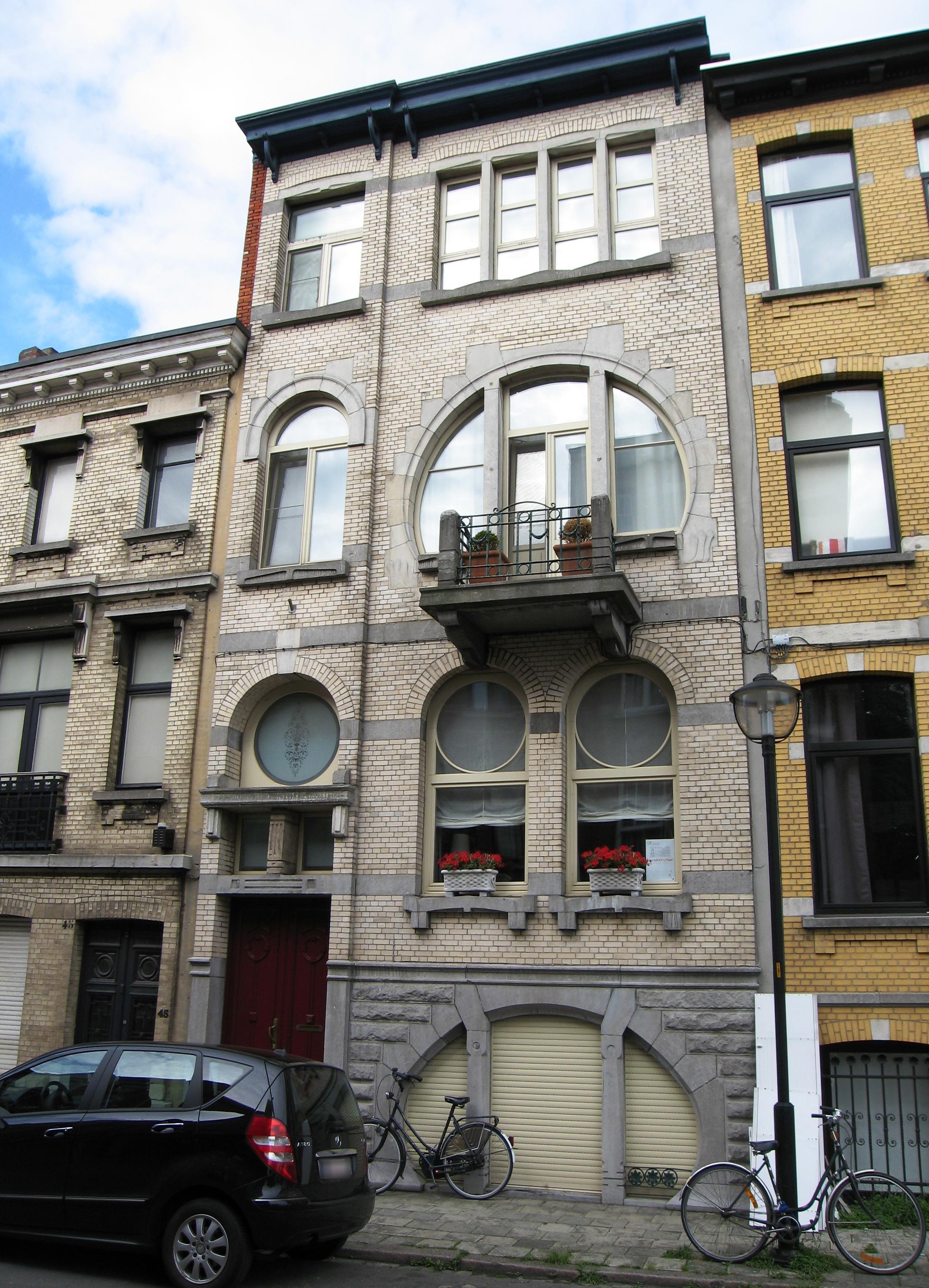 De afbeelding 'Meergezinswoning in art nouveau' gemaakt door Braeken, Jo wordt ter beschikking gesteld door Agentschap Onroerend Erfgoed (AOE) onder de volgende voorwaarden: Modellicentie voor gratis hergebruik, Naamsvermelding 4.0 Internationaal.