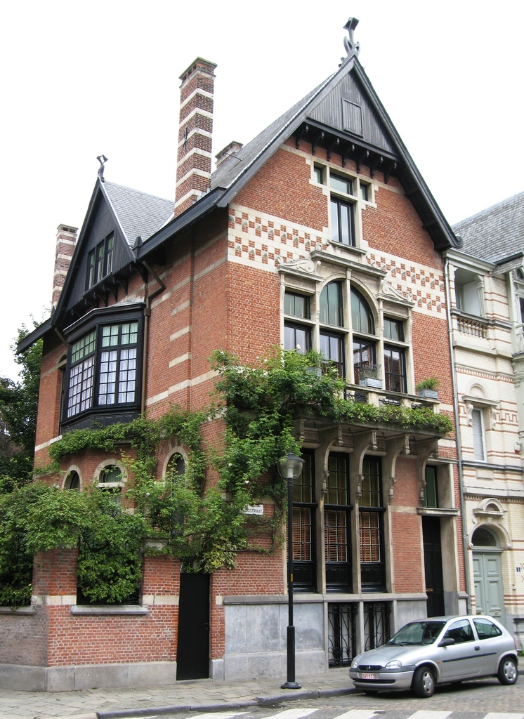 De afbeelding 'Eclectisch hoekhuis' gemaakt door Braeken, Jo wordt ter beschikking gesteld door Agentschap Onroerend Erfgoed (AOE) onder de volgende voorwaarden: Modellicentie voor gratis hergebruik, Naamsvermelding 4.0 Internationaal.
