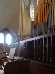 De afbeelding 'Doksaalorgel' gemaakt door Roose, Patrick wordt ter beschikking gesteld door Agentschap Onroerend Erfgoed (AOE) onder de volgende voorwaarden: Modellicentie voor gratis hergebruik, Naamsvermelding 4.0 Internationaal.