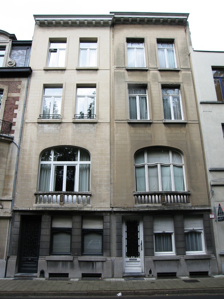 De afbeelding 'Antwerpen Markgravelei 165-167' gemaakt door Braeken, Jo wordt ter beschikking gesteld door Agentschap Onroerend Erfgoed (AOE) onder de volgende voorwaarden: Modellicentie voor gratis hergebruik, Naamsvermelding 4.0 Internationaal.