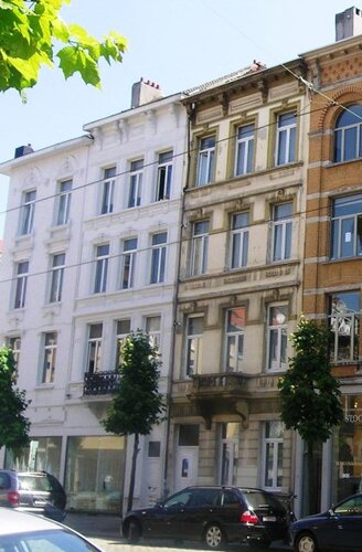 De afbeelding 'Twee neoclassicistische meergezinswoningen' gemaakt door Hooft, Elise wordt ter beschikking gesteld door Agentschap Onroerend Erfgoed (AOE) onder de volgende voorwaarden: Modellicentie voor gratis hergebruik, Naamsvermelding 4.0 Internationaal.