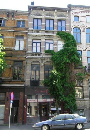De afbeelding 'Eclectische rij woon- en winkelpanden' gemaakt door Hooft, Elise wordt ter beschikking gesteld door Agentschap Onroerend Erfgoed (AOE) onder de volgende voorwaarden: Modellicentie voor gratis hergebruik, Naamsvermelding 4.0 Internationaal.
