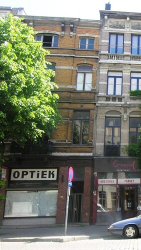 De afbeelding 'Eclectische rij woon- en winkelpanden' gemaakt door Hooft, Elise wordt ter beschikking gesteld door Agentschap Onroerend Erfgoed (AOE) onder de volgende voorwaarden: Modellicentie voor gratis hergebruik, Naamsvermelding 4.0 Internationaal.