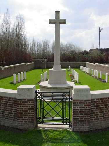 De afbeelding 'Boezinge: Colne Valley Cemetery: Toegang begraafplaats' gemaakt door Decoodt, Hannelore wordt ter beschikking gesteld door Agentschap Onroerend Erfgoed (AOE) onder de volgende voorwaarden: Modellicentie voor gratis hergebruik, Naamsvermelding 4.0 Internationaal.