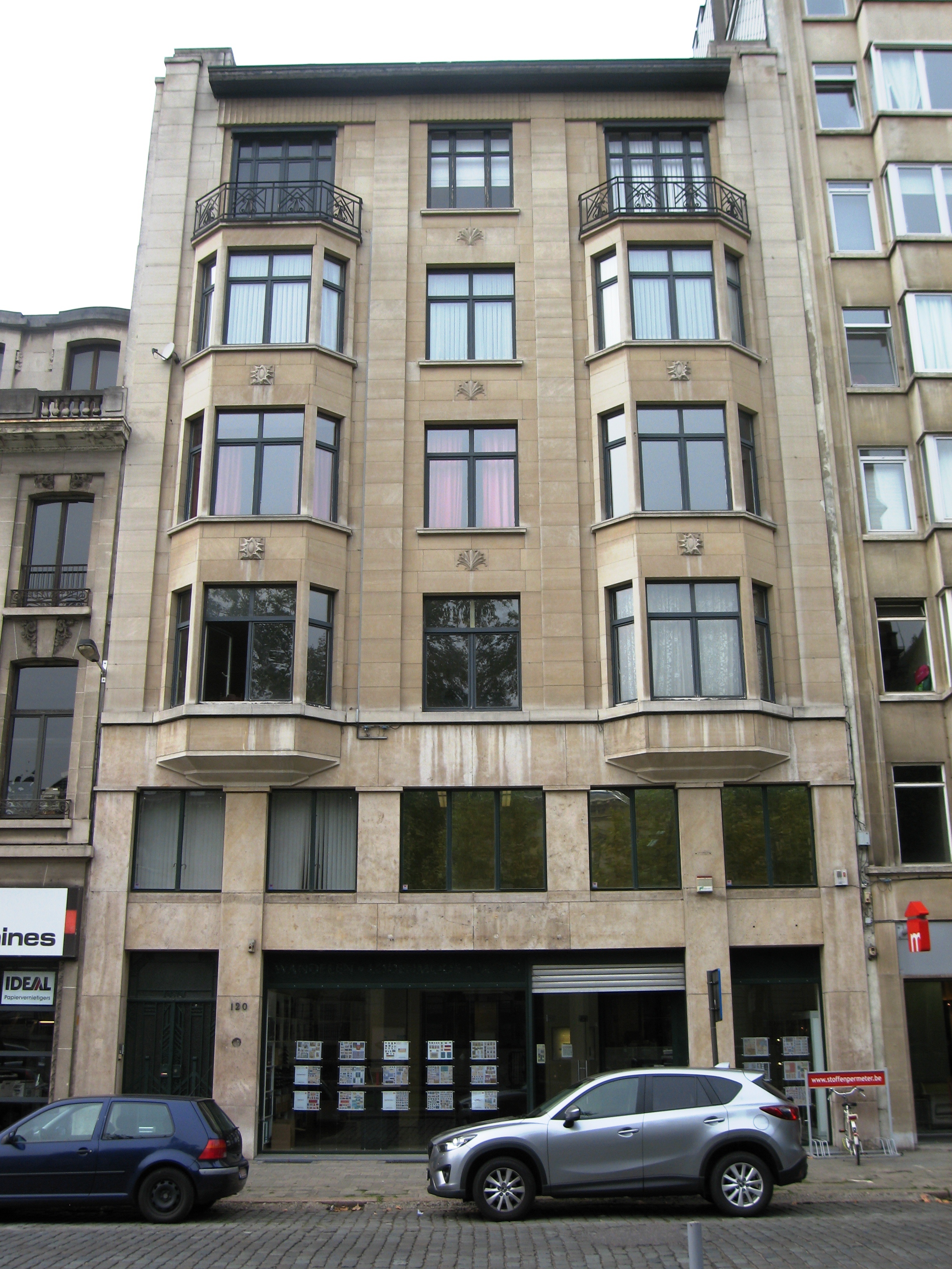 De afbeelding 'Antwerpen Frankrijklei 120' gemaakt door Braeken, Jo wordt ter beschikking gesteld door Agentschap Onroerend Erfgoed (AOE) onder de volgende voorwaarden: Modellicentie voor gratis hergebruik, Naamsvermelding 4.0 Internationaal.