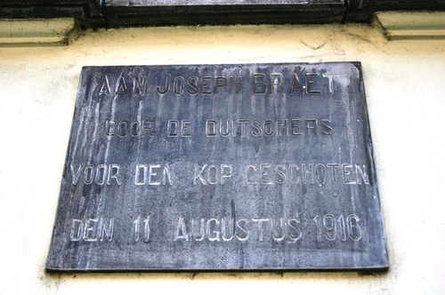 Aan Joseph Braet Door de Duitschers voor den kop geschoten den 11 augustus 1916