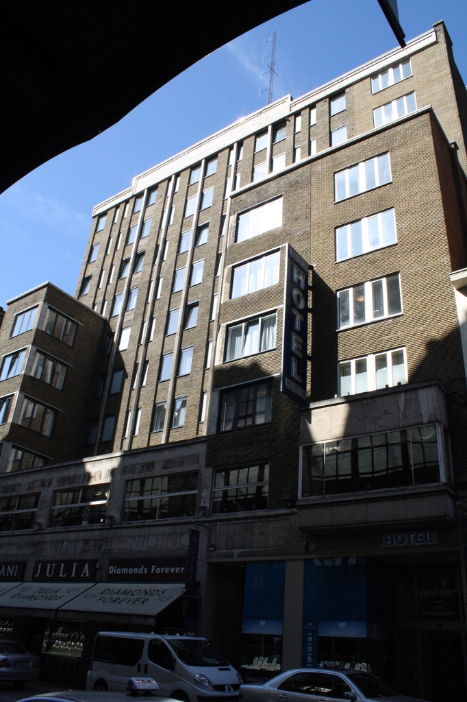 De afbeelding 'Complex met bank en hotel Century Tourist' gemaakt door Hooft, Elise wordt ter beschikking gesteld door Agentschap Onroerend Erfgoed (AOE) onder de volgende voorwaarden: Modellicentie voor gratis hergebruik, Naamsvermelding 4.0 Internationaal.